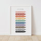 Stellen Sie Ihre Kinder ihren Farben mit diesem einfachen und schönen Poster vor. Dekorieren Sie eine Mauer im Kinderzimmer, im Schlafzimmer oder im Spielzimmer Ihres Kleinen mit diesem Bildungspapier, um das Lernen im Alltag zu fördern. Ändern Sie die Sprache oder Rechtschreibung im Design mithilfe der Vorlagenfeatures.