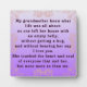 Meine Großmutter wusste, worum es im Leben ging: Niemand verließ ihr Haus mit einem leeren Bauch, ohne einen Umarmung zu bekommen, und ohne sie zu hören, sage ich, ich Liebe dich. Sie berührte das Herz und das Soul aller, die sie trafen, aber keiner mehr als ich.
