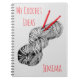 Dieses Notizbuch wurde entwickelt, um Ihre Noten und Ideen für Ihr Häkchen behalten. Es hat die Worte "Meine Häkelideen" und Sie können es mit Ihrem Namen personalisieren. Der Hintergrund ist hellgrau mit einem schwarz-weißen Tuch aus Wolle und zwei roten Häkelhaken.