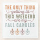 Dieses humorvolle und gemütliche Herbstdesign besticht durch die witzige Phrase "Das Einzige, was dieses Wochenende zu spüren bekommt: Meine Herbstkerzen" in einer Mischung aus kühlen und eleganten Schriftart. Der Text ist kreativ mit unterschiedlichen Schriftart und Stilen angeordnet, was visuelles Interesse und einen spielerischen Ton schafft. Die Farbpalette umfasst warme Herbsttöne wie verbrannte Orange, erdige Grüntöne und weiche Braun, die die Wärme und den Komfort der Saison wecken.