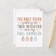 Dieses humorvolle und gemütliche Herbstdesign besticht durch die witzige Phrase "Das Einzige, was dieses Wochenende zu spüren bekommt: Meine Herbstkerzen" in einer Mischung aus kühlen und eleganten Schriftart. Der Text ist kreativ mit unterschiedlichen Schriftart und Stilen angeordnet, was visuelles Interesse und einen spielerischen Ton schafft. Die Farbpalette umfasst warme Herbsttöne wie verbrannte Orange, erdige Grüntöne und weiche Braun, die die Wärme und den Komfort der Saison wecken.