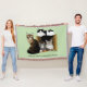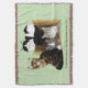 Vier Katzen gruppieren sich um eine Faltschachtel mit grünem Hintergrund