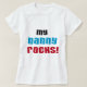 Meine Nanny Rocks T - Shirt, Karten, Aufkleber, Totensäcke, Magnete, Tasten und andere Gegenstände mit schwarzem, blauem und rotem Text. Diese "My Nanny Rocks"-Artikel sind eine tolle Möglichkeit, Ihre Liebe für Ihr ganz besonderes Kindermädchen zu zeigen!