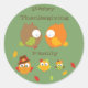 Niedliche Familieneuulenaufkleber für den Erntedank mit rot, gelb, orange, grün. Ausdruck der "glücklichen Danksagerfamilie".
