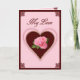 Rich Burgundy und weiche Pinks unterstreichen das hübsche Rose- und Herzdesign. Inside Vers gewidmet, um die besondere Person, die Sie Liebe.