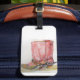 Dieses ist eine Aquarellmalerei meiner roten Lieblingsstiefel. Die Sporne wurden für einen Tapetengrenzentwurf hinzugefügt.