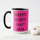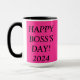 "Meine Lieblings-Angestellte gab mir diese Tasse" Boss's Day Coffee/Tea-Tasse. Feiern Sie den Boss's Day mit einem nachdenklichen Geschenk, das jedes Mal, wenn sie es benutzen, ein Lächeln bringen wird! Diese charmante Tasse zeigt die fröhliche Botschaft "Happy Boss's Day 2024" auf der einen Seite und die humorvolle Botschaft: "Meine Lieblingsarbeiterin hat mir diese Tasse gegeben". Obwohl der hellrosa Hintergrund für eine Chefin besser geeignet sein könnte, kann diese Tasse angepasst werden, indem die Hintergrundfarbe geändert wird, um einen männlicheren Anzug zu erzielen. Zeigen Sie Ihre Wertschätzung und erhellen Sie Ihren Tag mit dieser einzigartigen und persönlichen Touch!