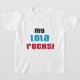 Meine Lola Rocks T - Shirt, Karten, Aufkleber, Totensäcke, Magnete, Tasten und andere Gegenstände mit schwarzem, blauem und rotem Text. Diese My Lola Rocks Artikel sind eine großartige Möglichkeit, Ihre Liebe für Ihren besonderen Lola zu zeigen!