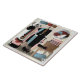 Nostalgische Erinnerungen an den Schrank meiner Mutter auf verschiedenen Produkten wie Untersetzer, eine Plakette und einen Magneten.