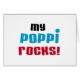 Meine Poppi Rocks T - Shirt, Karten, Aufkleber, Totensäcke, Magnete, Tasten und andere Gegenstände mit schwarzem, blauem und rotem Text. Diese My Poppi Rocks Artikel sind eine großartige Möglichkeit, Ihre Liebe für Ihren besonderen Poppi zu zeigen!