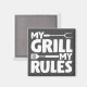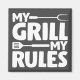 Spaß barbeque Grafik Zitat, dass: "Mein Grill Meine Regeln", mit einer Grillen Gabel und Spatula. Klicken Sie auf "Personalisieren", um Bild- und Hintergrundfarbe zu ändern! | Bild von Badea Mihai | Schotter. Bild-ID: 1742273987 | Shutterstock® - Alle Rechte vorbehalten.