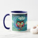 Reizende und bunte Eule stehend auf dem sichelförmigen Mond. Ursprünglicher Entwurf durch Sandra Vargas.