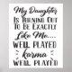 Meine Tochter dreht sich genau wie ich gut gespieltes Karma T-Shirt sind Phantastische Geschenke von Familienmitgliedern zu Mutter, Mama, Papa, Papa, Vater, Schwestern, Großmutter, Tante, Onkel am Schwestertag, Arbeitstag, Weihnachten, Geburtstag, Vatertag . Vergangene Kunden Liebe dieser Phantastischen Familie für ihre Lieben und es ist wirklich cool für Mutter, Vater, Schwestern, Großmutter, Großvater ihrer Familie am Tag der Schwester, Geburtstag, Weihnachten, Vatertag, Muttertag, Familientag, Arbeitstag als Geschenk.
