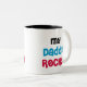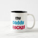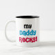 Vati lächelt, wenn er seinen Sohn oder Tochter sieht, die dieses niedliche mein Vati-Felsen-T - Shirt oder anderes Einzelteil mit dem blauen, roten und schwarzen Textentwurf tragen.