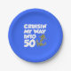 Meine Weise in 50 kreuzen cool, blauer Party-Teller, der einen Cartoonanker kennzeichnet. Großer themed Party-Teller der Kreuzfahrt, des Bootes und des Schiffs. Groß für ein 50. Meilensteingeburtstags-Party für jemand, das auf eine Kreuzfahrt geht. Sagen Sie gute Reise mit diesem coolen, blauen Party-Teller.