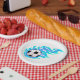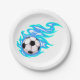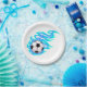 Ein Meisterschaftsfußball auf blauem Hintergrund. Dieses Design wirkt auf diese Paper-Teller sehr effektiv