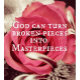 Meisterwerk des inspirierenden Gottes. Schöner, blumengeschmückter Hintergrund mit schwarz-weißem Blumenrand mit einem Single rosa in der Mitte. Mit dem ermutigenden Zitat: "Gott kann die zerbrochenen Stücke in Meisterwerke verwandeln" Inspirationelles, motivierend Christliches Zitat. Mehr zu unserem Shop Front unten : Zitat Leben.