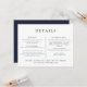 Informationen zur Hochzeitinformation Vorlage Gehäuse Karte. Vorlage stellt mehrere Zeilen für Ihre detaillierten Informationen bereit. Einschließlich Empfang, Unterkunft und Website. Auf der Rückseite der Karte ist die Farbe massiv blau.