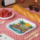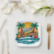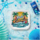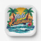 Feiern Sie die Saison mit einer warmen Drehung! 🌺 diese Mele Kalikimaka Tropical Christmas Square Teller mit lebhaften Palmen, Hibiskus Blume und sanften Ozeanwellen gegen einen strahlenden Sonnenuntergang. Ideal für festliche Ansammlungen, Weihnachtsfeiertage im tropischen Stil oder für ein küstennahes Urlaubshotel.
