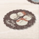 Zwei niedliche mellow Schneemann in neutralem Erdton Terra Cotta Amaro Rothüte und Schals Set auf einem warmen Fall Schokoladenbraun Hintergrund mit Linie gezeichnet Blume und heilig. Der frohe Weihnachtstext ist vollständig editierbar und Sie können Ihren eigenen Text hinzufügen. Es gibt auch eine Version dieses Untersetzer ohne den Text.