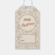 Fun neutraler Erde Ton Weihnachtsmuster mit mellow lächelnden Creme Snowmen in Terra Cotta amaro Rothüte und Schals Set auf einem warmen Fall Schokoladenbraun Hintergrund mit Linie gezeichnet Blume und heilig. Ecru beige Weihnachtsblumenmuster mit einfachem Frohen Weihnachtstext auf der Rückseite. Alle Texte sind vollständig editierbar und Sie können Ihren eigenen personalisierten Text hinzufügen. Es gibt eine andere Version dieses Tags (v2) mit einem braunen Weihnachtsblumenmuster und einem niedlichen Bild eines gemütlichen Schneemanns auf der Rückseite.