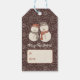 Fun neutraler Erde Ton Weihnachtsmuster mit mellow lächelnden Creme Snowmen in Terra Cotta amaro Rothüte und Schals Set auf einem warmen Fall Schokoladenbraun Hintergrund mit Linie gezeichnet Blume und heilig. Braune Weihnachtsblumenmuster mit einem niedlichen Bild von zwei gemütlichen Schneemännern auf der Rückseite. Die frohe Weihnachten und To From Texte sind vollständig editierbar und Sie können Ihren eigenen personalisierten Text hinzufügen. Es gibt eine andere Version dieses Tags (v1) mit einem cremefarbenen Hintergrund ohne das Schneemobil-Paar auf der Rückseite.