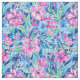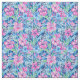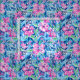 Ein nahtloses Muster mit rosa Blume mit grünen Blätter, blauen Blumen im Hintergrund, weißen Musiknoten und Flecken. Das Design hat ein handgemaltes Aussehen und verbindet Blumenelemente mit musikalischen Motiven zu einem harmonischen und künstlerischen Effekt.