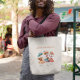 Tragen Sie Ihre Sachen in lebendigem und personalisiertem Stil mit dieser individuell gestaltbaren Totentasche mit einer ansprechenden Abbildung von drei tanzenden Catrinas Día de Muertos! Über oder unter dem fröhlichen Kunstwerk können Sie einen Namen, eine kurze Nachricht, Initialen oder jeden Text hinzufügen, den Sie möchten, um diese Tasche einzigartig zu machen. Jede Skelettfigur ist mit farbenfrohen Blumenhüten und fließenden Kleider in fröhlichen Pfirsichfarben, aquamarinen und roten Tönen geschmückt, die Ihren Alltagsreichtum mit einer Touch des fröhlichen Geistes dieser mexikanischen Tradition bereichern. Diese Tasche eignet sich ideal zum Shoppen, Büchertragen, Strandfahren oder einfach nur zum Spielen mit einem einzigartigen und künstlerischen Flair. Die lebendige Szene der musikalischen Feier, kombiniert mit Ihrem eigenen Text, macht es zu einem stilvollen und persönlichen Weg, Ihre Sachen zu tragen. Überzeugen Sie sich von der "Melodie der Tanztoten", wo immer Sie hingehen!