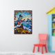 Dieses fantasievolle Kunstwerk besticht durch einen Hai, der überraschend mit einem Hut und einer roten Sonnenbrille geschmückt ist und eine elektrische Gitarre leidenschaftlich trifft. Es liegt auf einer schneebedeckten Bergkuppe und überblickt ein riesiges blaues Meer, das von Eisschollen durchzogen und von weit entfernten Gipfeln gerahmt ist. Die dicken, bewussten Pinselstriche verleihen der eisigen Landschaft eine spürbare Textur, was die Deklaration "ROCK and ROLL" wirklich hervorhebt.