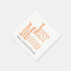 Einwegservietten aus Papier, die perfekt für den Hochzeitsempfang geeignet sind, mit melonorangefarbenem Text, der Just Married ausliest und einen Bereich hat, in dem Sie die Namen der Braut und des Bräutigams hinzufügen können!