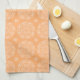Dieses weiße Mandala liegt auf einem hellorangen Hintergrund. Die Farben sind fröhlich und energisch. Teil der Sammlung Dagrewi Mandala.