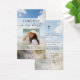 Keep the memory of a loved one close with this custom image personalized prayer card featuring a cherished photo of them framed in faux metallic gold foil, the sentiment FOREVER IN OUR HEARTS, name and dates overlaid on a photo or image that represents your loved one best (shown with a beach image) on the front and an editable prayer accented with a simple cross on the back atop the same or different image. With its simple yet elegant classic design and elegant script typography, it makes a meaningful keepsake to share at a funeral, memorial service or Celebration of Life and offers comfort and a lasting tribute for family and friends. Its small and portable size of 3.5x2" (wallet-sized) makes it convenient for loved ones to carry it with them as a reminder of your loved one’s life and spirit. Personalization makes each card unique.