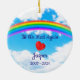 Ehre deinen besten Freund mit einem individuellen Foto-Haustier-Gedenkschmuck. Dieses einzigartige Denkmal ist das perfekte Geschenk für sich, Familie oder Freunde, um Ihren Lieben zu ehren. Passen Sie sich mit den Fotos eines Lieblings-Hundes oder einer Katze an, und nennen Sie es. Zurück - Rainbow Bridge Design mit Herz. Zitat "Bis wir uns wieder treffen", Name und Datum. Siehe 'Personalisieren Sie diese Vorlage', um Foto und Namen zu ändern. COPYRIGHT © 2020 Judy Burrows, Black Dog Art - Alle Rechte vorbehalten. Pet Memorial Beileid Rainbow Bridge Cat Foto Keramik