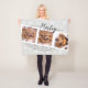 Feiern Sie das Leben Ihres besten Freundes mit dieser eleganten und einzigartigen personalisierten Haustiervälldecke. Diese schöne Collage aus Foto ist das ideale Geschenk für Sie und Ihre Lieben, um die Erinnerungen Ihres lieblichen Hundes, Katze, Guinea Schwein, Kaninchen, Frettchen oder anderen Haustieres mitzubringen. Dieses Design verfügt über eine 3-Foto-Collage mit einem Stand-Stil im Foto (vorzugsweise Bilder mit horizontaler Ausrichtung hinzufügen); Datum und Name des Tieres in einer handgeschriebenen schwarzen Typografie. Es zeigt auch das Zitat: "Ein großes Stück meines Herzens lebt im Himmel" in der Hauptstadt sans serif grauen Schriftart mit niedlichen kleinen rosa Herzen dekoriert. Diese Gedenktüte hat ein einfaches Pfotenmuster und einen hellgrauen Hintergrund.