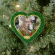 Der Text und das Foto auf diesem Weihnachtsschmuck (Herzform) sind leicht zu verändern. Das simulierte grüne Glitzer-Design, der simulierte goldene Rahmen, Kiefernbäume und heilige Beeren machen es zu einem traditionellen "in Erinnerung an" Weihnachtsschmuck. Auf der Rückseite können Sie es mit dem Namen Ihrer Lieben anpassen, sowie die Gedenkverse und Lebensjahre anpassen. Um Text und Foto zu ändern, verwenden Sie die Optionen zum Personalisieren. Für umfangreichere Änderungen am Ornament, wie zum Beispiel das Ändern des Schriftartes, der Größe des Schriftartes, der Farbe des Schriftartes, der Textplatzierung, der Bildgröße und/oder der Bildplatzierung, verwenden Sie die Option Anpassen. Hinweis: Dies ist ein flaches, bedrucktes Design ohne erhöhte oder 3D-Verzierungen.