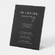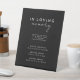 Herzlich willkommen in unserem Black Modern Script Wedding Memorial Pedestal Sign Design, wo moderne Minimalismus auf die Kunst der Kalligraphie trifft. Diese kuratierte Ästhetik bringt einen Hauch von Raffinesse zu Ihrem besonderen Tag - mit einer Drehung von boho, lässigem Charme. Die Kombination aus einfacher Typografie und einem stilvollen Script-Schriftart verleiht Ihrer Hochzeit eine einzigartige Persönlichkeit. Dieses klassische Design bietet einen zeitlosen, polierten Look, der perfekt für Frühjahr-, Sommer-, Herbst- oder Winterhochzeiten ist. Eine schlichte Palette von schwarzen Kulissen und weißem Text schafft die perfekte neutrale Kulisse für Ihre Feier. Machen Sie Ihre Hochzeit wirklich elegant mit unserer schönen, modernen Skriptkollektion. Wie bei allen unseren Designs, wenn Sie Fragen oder besondere Wünsche haben, frag einfach.