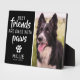 Adorable Haustier Gedenktafel mit einem Foto Ihres Haustieres, und das Beileid Zitat, dass "Die besten Freunde sind die mit Paws", ein Pfosten, ihren Namen und Daten.