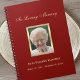 Dieses Gästebuch wird in Bordeaux mit goldenen Akzenten gezeigt. Ihr Foto ist der Mittelpunkt mit dem Namen Ihres Lieben und Daten direkt unter dem Foto. Über dem Foto stehen die Worte "In Loving Memory". Ein schönes personalisiertes Denkmal- oder Begräbnisgastronomieheft. Sympathythanka für das Urheberrecht