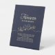 Elegantes, modernes minimalistisches Gold und marineblau Gedenktafel Tafelschild mit einzigartigem handgezeichnetem Paar liebt Vögel und handgeschriebene Kalligraphie-Skripte.