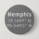 Moderne typografische Gestaltungsmerkmale: Längen- und Breitengradkoordinaten von Memphis im abgestandenen weißen Schriftart auf mittlerem grauen Hintergrund