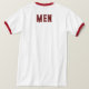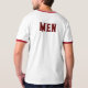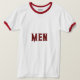 Men Text oder Name oder Word mit dunkelrotem Text und The Style ist der Ringer-T - Shirt, der Farbtyp ist weiß/rot und der Formattyp ist Erwachsene 2x.