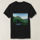 Dies ist ein komischer T - Shirt von Schwarzen mit einem frühen Morgenbild des Glacier Nationalparks mit den Glacier Lilies im Vordergrund. Das Foto wurde von LCAppling Fotografy of Kalispell, Montana aufgenommen.