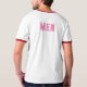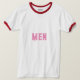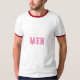 Men Text oder Name oder Wort mit rosa Farbtext und The Style ist ein Ringer-T - Shirt, der Farbtyp ist weiß/rot und der Formattyp ist Adult L.