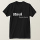 Der männliche T - Shirt wird in schwarz mit weißem Sondertext gezeigt: Maui, Hawaiianische Inseln. Passen Sie dieses Objekt an oder kaufen Sie, wie es ist.