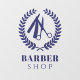 Barbershop dunkelmarineblaue Witwen mit einem vordefinierten Logo mit kreisförmigen Scheren und einem geraden Rasierer mit einem Lorbeerkranz. ++++++++++++ Sie können den Namen durch Ihren eigenen ersetzen. +++++++++++++++++++++++++++ Wenn Sie gewollt haben, das Logo zu ersetzen oder Farben zu ändern, und Hilfe benötigen, senden Sie eine Nachricht an den Designer von dieser Seite oder per E-Mail an designer@sunflowersandcheers.com
