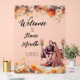 Schönes Blumenschild in orangefarbenen Acrylfarben. Es kann an Ihre Wünsche angepasst werden.