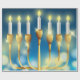 Die für den jüdischen Urlaub dekorierte Menorah symbolisiert auch die in sieben Tagen entstandene Kreation, wobei das mittlere Licht das Sabbat darstellt.