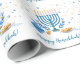 Machen Sie Chanukah etwas Besonderes und geben Sie Ihr Bestes zu Familie und Freunden mit diesem dekorativen Hanukkah Packpapier. Eine Hanukkah-Szene mit einer Menorah, Sufganiyot (Donuts), dreiblättrigen und Olivenzweigen wird in einem Aquarelleffekt dargestellt. Fügen Sie Ihre eigene benutzerdefinierte Nachricht hinzu. Verfügbar mit passenden Produkten.