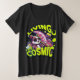 Framed by bold, lime-green 80s-style typography that reads "LIVING THE COSMIC," this artwork flawlessly blends trippy space aesthetics with ultimate vacation vibes. It is the perfect wearable statement piece for weekend parties, summer vacations, or just bringing some stellar, relaxed energy to your everyday wardrobe