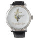 Uhr, Klassische Damenuhr mit schwarzen Lederarmband